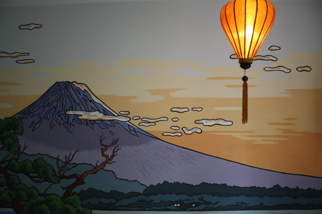 Maar waarom wachten tot je ziek wordt? Ik denk dat je langer gezond blijft in een omgeving met natuurlijke elementen, en natuurlijke vormen. Met mijn muurschilderingen naar antieke Japanse houtsnedes van landschappen maak ik iedere ruimte weidser, mooier, en vooral: natuurlijker.